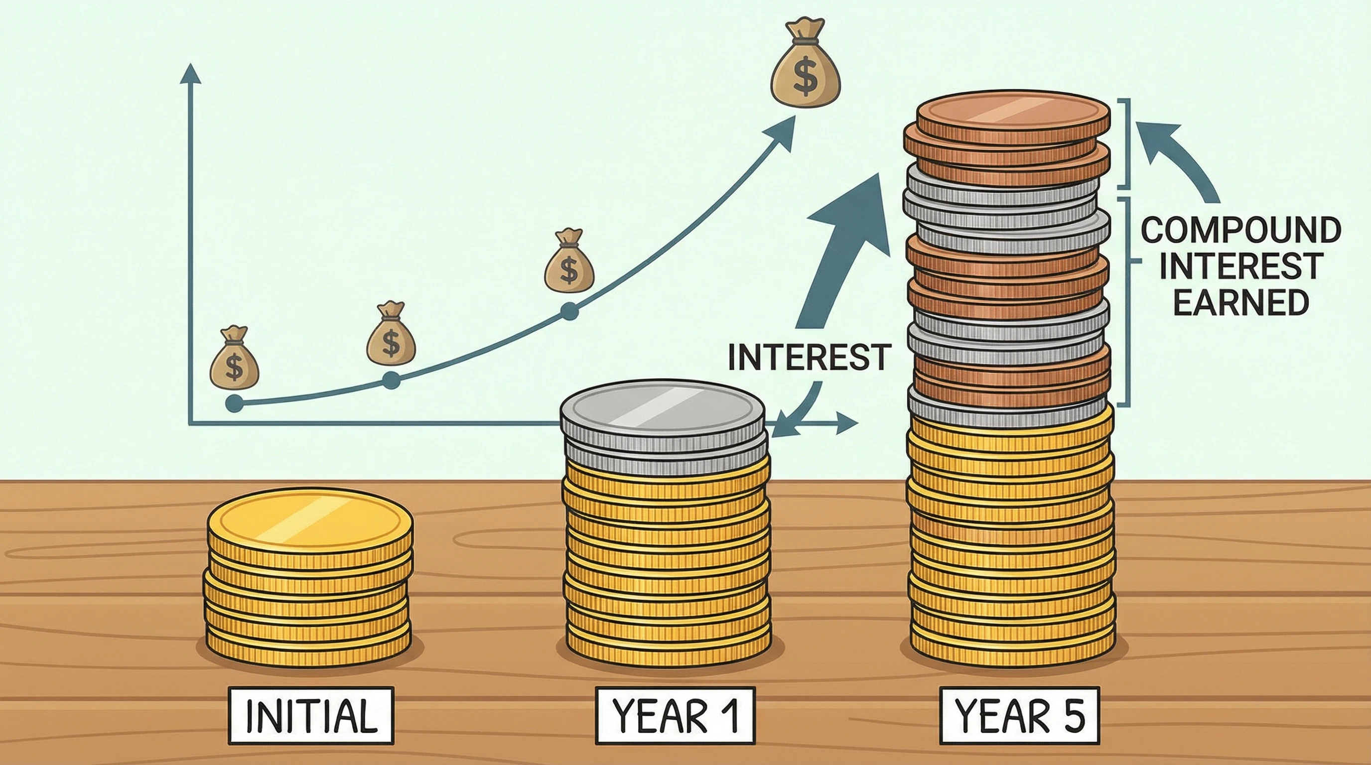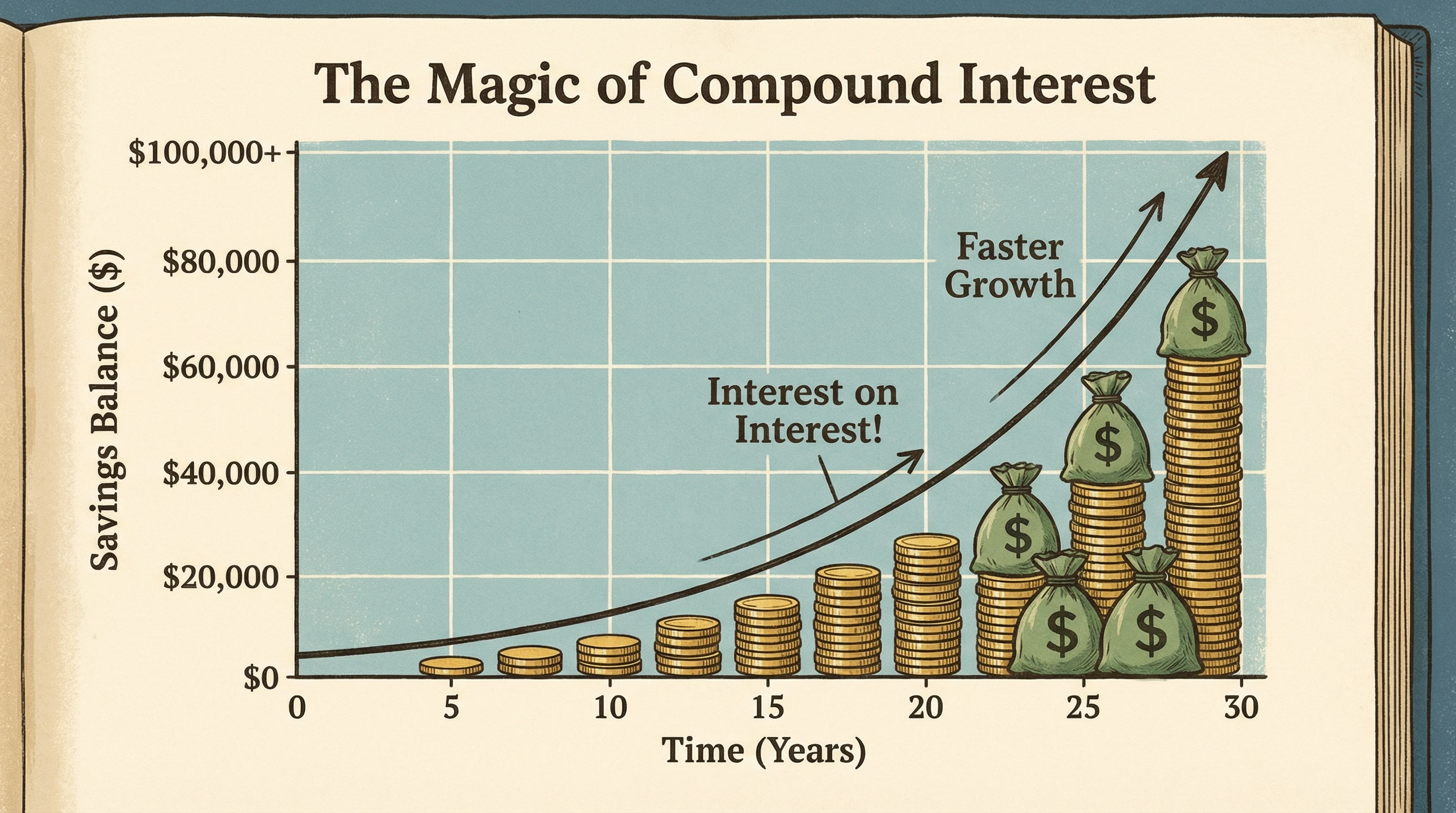 At its core, compound interest means you earn interest not just on your original savings (the principal), but also on all the interest thatโs already built up along the way.